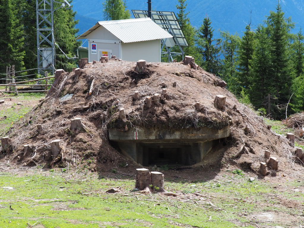 Lüftung mit Blick nach Italien – ist auch nur 5 m vom Haus entfernt. Auf diesen Almen sind nicht die Viecher eingezäunt, sondern die Häuser, um sie vor dem Kuhsch… zu schützen