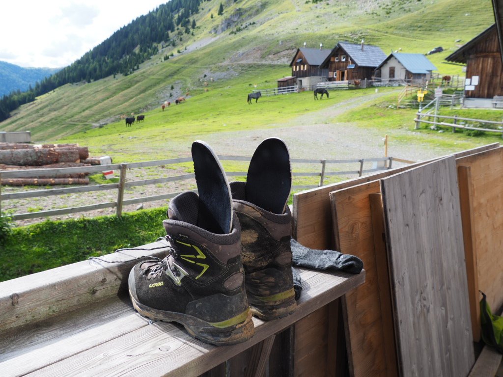 Der Abend in der Hütte war schön und lehrreich. Es kamen Menschen von der Alm und aus dem Tal. Es war ein wildes Sprachwirrwar aus kärnterisch, slowenisch und italienisch. Im Gailtal lebt eine slowenische Minderheit, die Sprache wird noch gepflegt. Ich habe Bruchstücke gelernt von Vertreibungen, Teilungen, Privilegien, Benachteiligungen und vielem mehr. Und ich durfte tollen Kärtnerischen Gesang erleben.