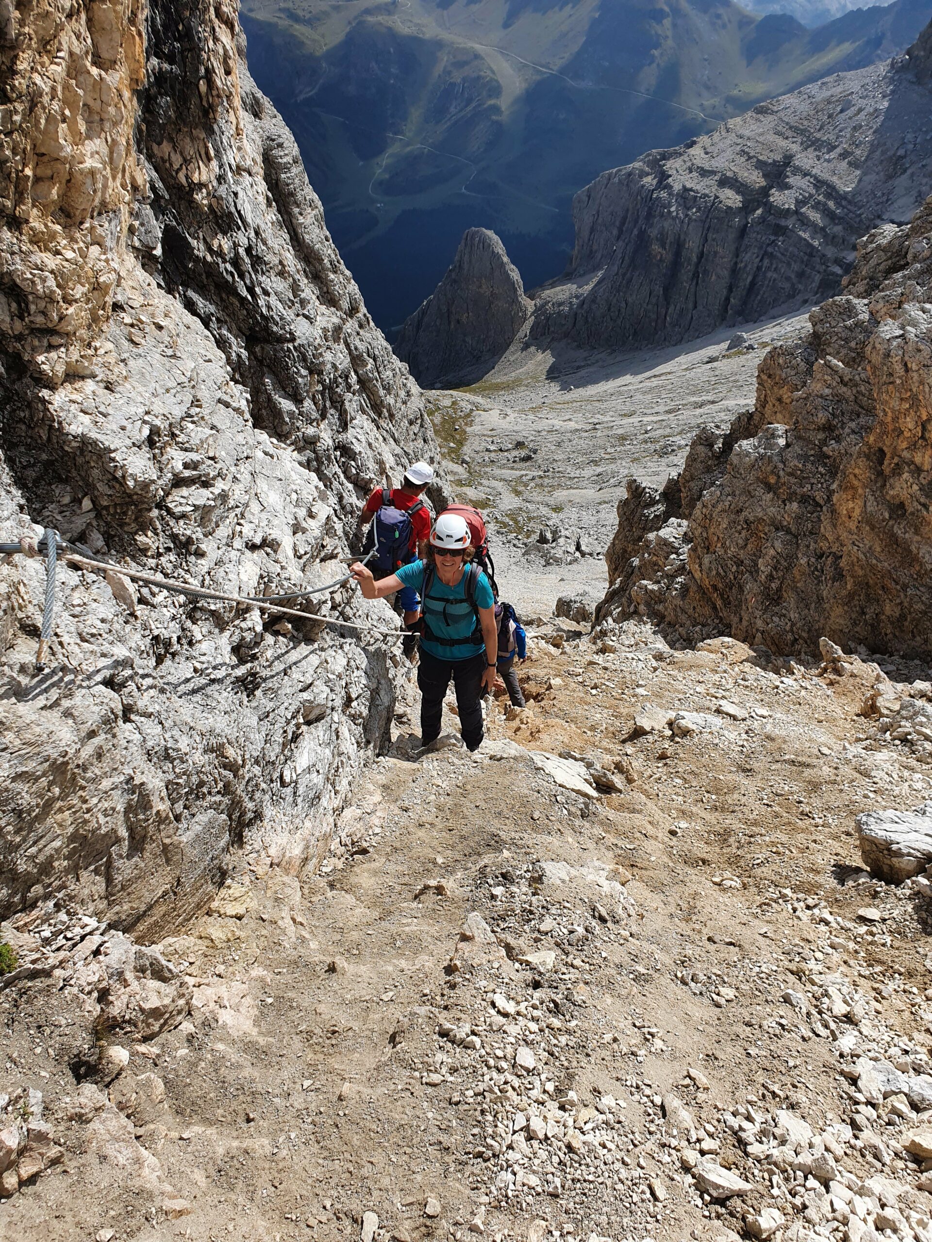 „Sella Ronda“ – Traum aller ambitionierten alpinen Skiläufer*innen, mit vielen Pisten- und Liftmetern an einem einzigen Skitag. Wir beschlossen, statt dessen hochzusteigen und einen der Sella-Gipfel „mitzunehmen“: Den Piz Boë, 3157 Meter hoch und somit mit Abstand höchster Gipfel meines diesjährigen Alpenbogen-Abschnitts.