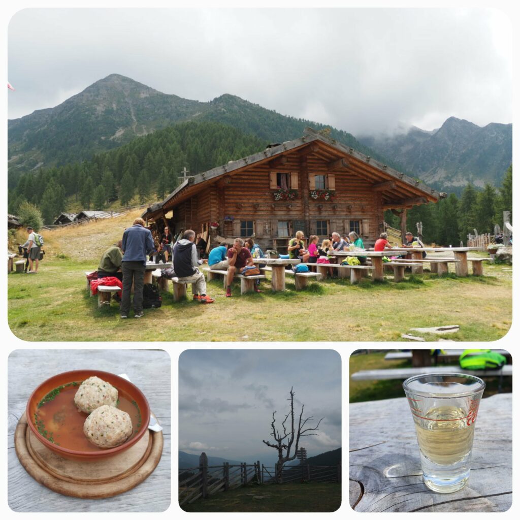 …, dass die Spitzner Alm bewirtschaftet ist und für mich Speckknödelsuppe und (von der Wirtin aufgedrängt) Rosmarinschnaps bereit hielt. Richtig schön da oben.