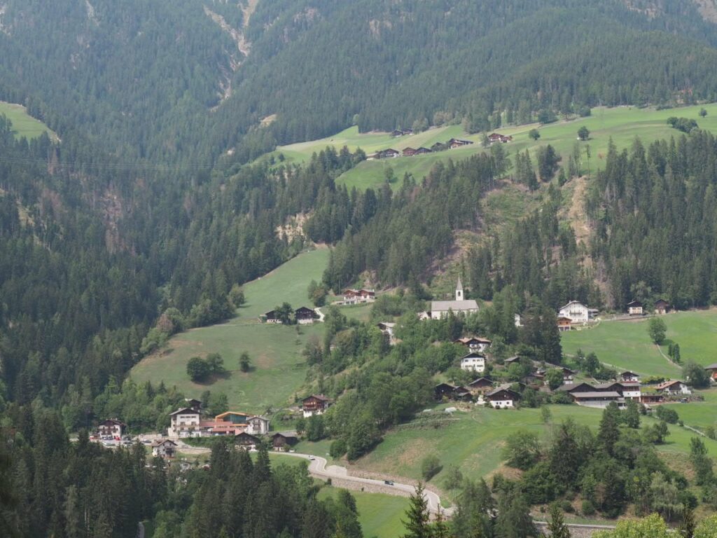 St. Walburg im Ultental. Eines der Häuser links ist der Eggwirt, bei dem ich heute nächtige und verköstigt werde.