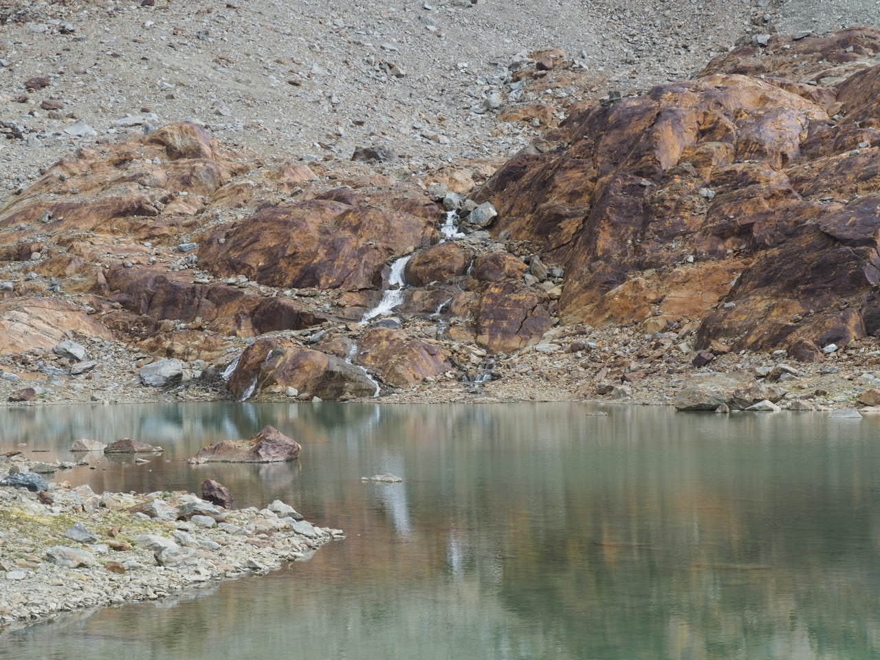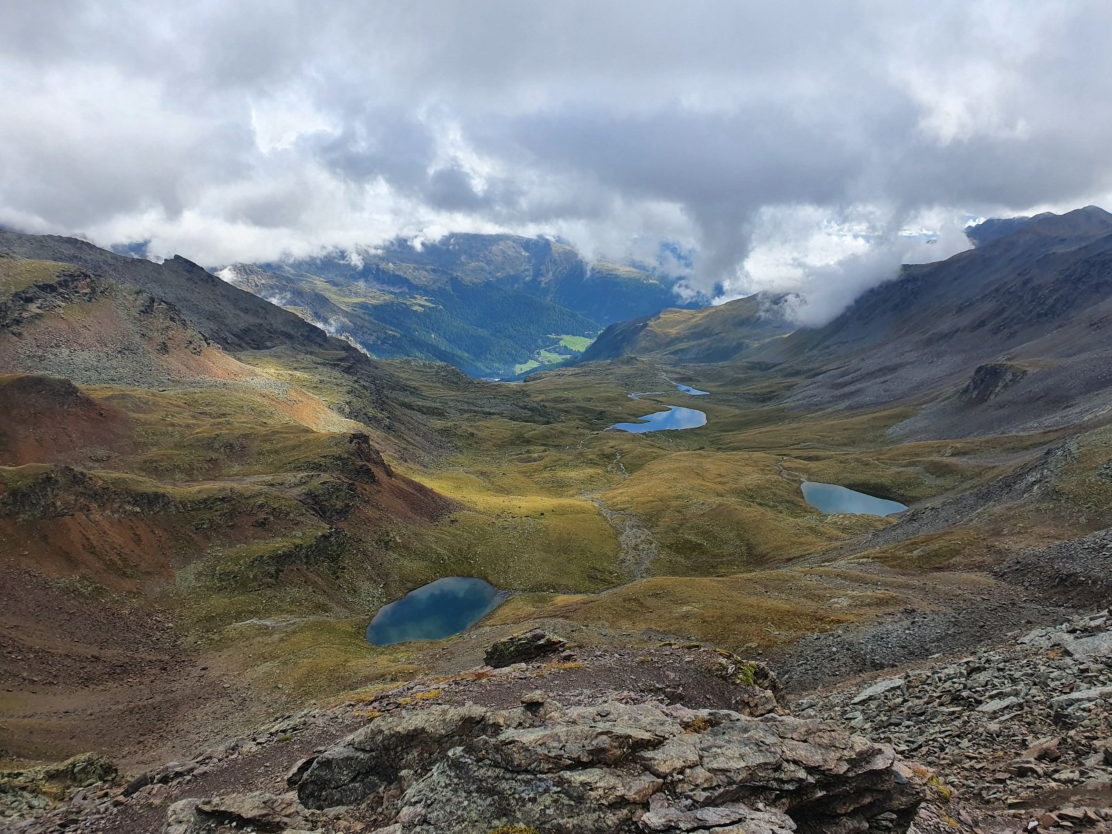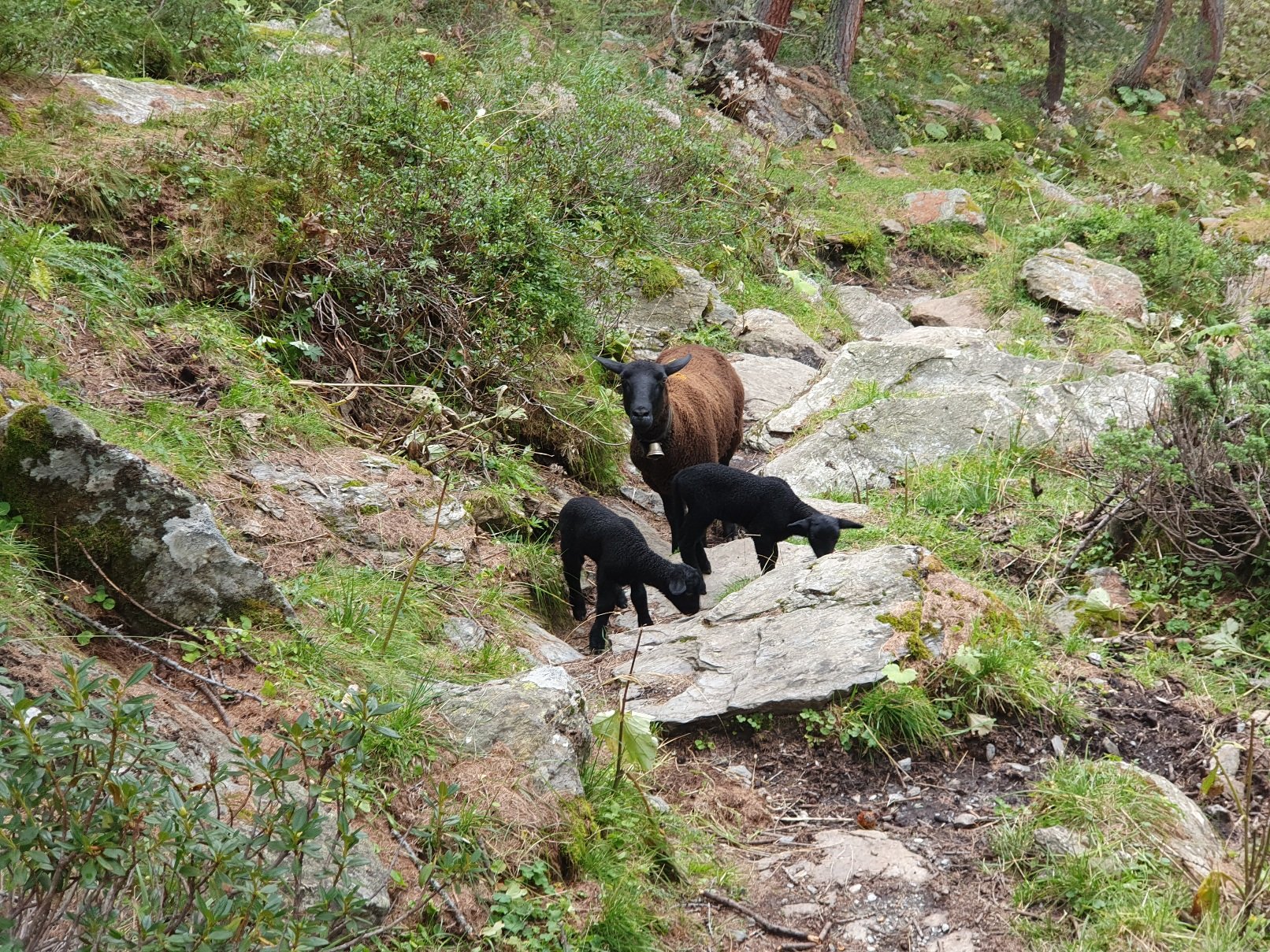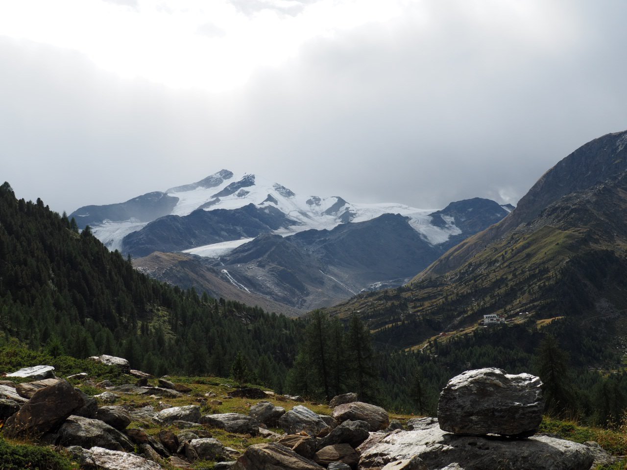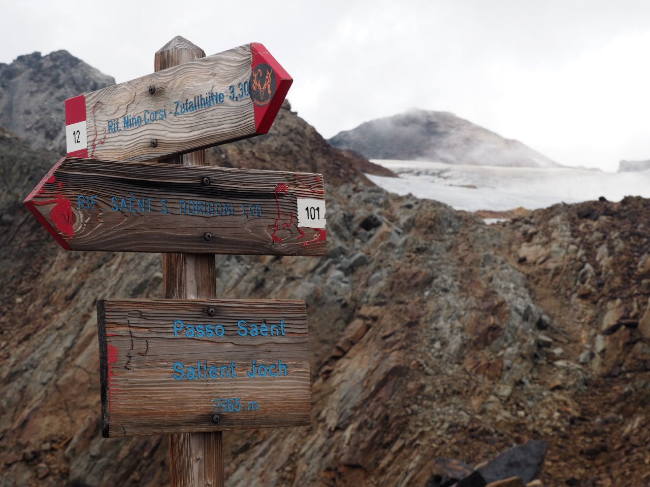 Heute war die erste echte alpine Etappe und hat voll Spaß gemacht. Über 2 Jöcher, interessante Pfade, interessantes meist rotes Gestein (Gipfelnamen wie Goldknotten und Metallspitze sagen alles), viele Seen. Ich gebe zu: Ich habe nicht gebadet. Es war mir zu kühl und mein Zeitplan war eher knapp. Total erhebend war auf dem Sällentjoch der Übergang in die Gletscherwelt des Ortlermassivs.