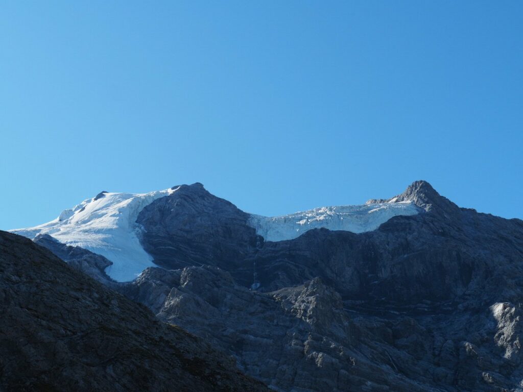 Beim Abstieg ins Tal – ich musste ziemlich weit runter – bin ich nochmal unter 2 Gletscherabbrüchen durch gekommen. Der Wirt der wunderschön gelegenen Berglhütte, bei der ich zwischendurch eine super Linzertorte genossen habe, meinte, dass er sehr viele Stornierungen bekommen hatte aufgrund des riesigen Medienhypes beim Marmolada-Unglück.