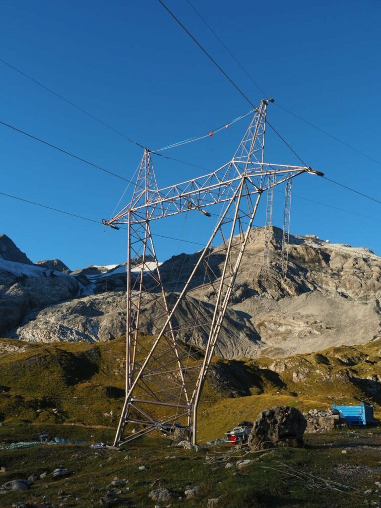Über das Stilfser Joch wird derzeit eine neue Hochspannungsleitung gezogen. Ganz schön aufwändig sowas.