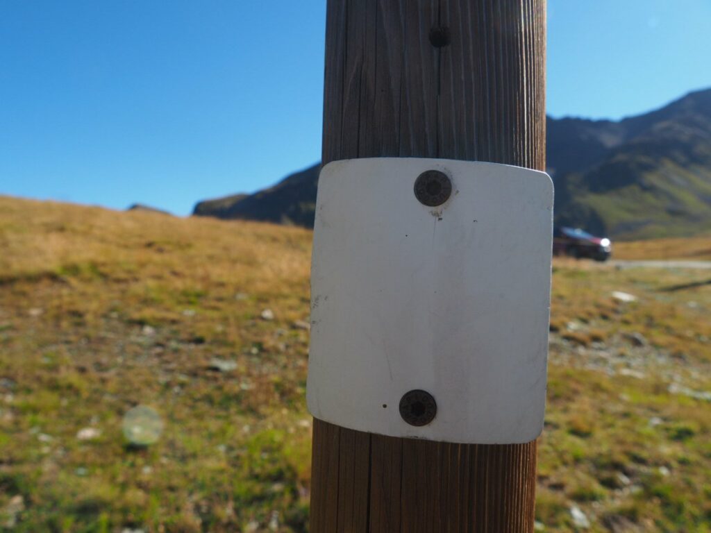 Das ist einfach ein weißes Täfelchen mit nix? Weit gefehlt: Es ist ein total verblichenes Via Alpina Schild. Ich bin seit heute nämlich wieder drauf.