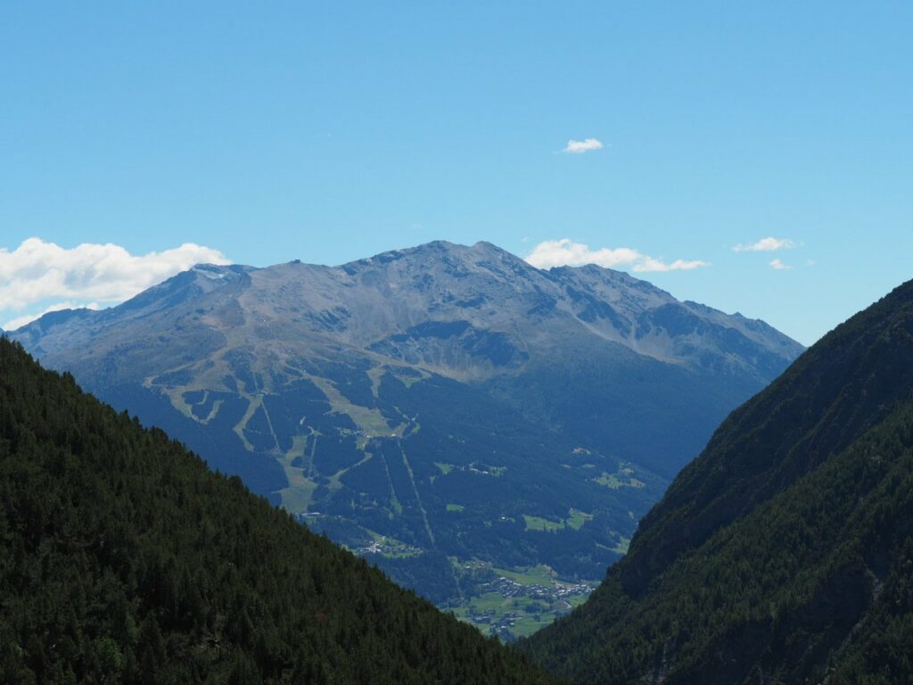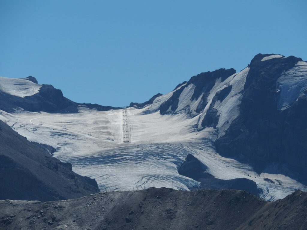 Das Joch. Und nur da ganz oben auf dem weißen Fleck kann im Sommer noch Ski gefahren werden. Und inzwischen gab es auch schon Sommer, in denen der Betrieb eingestellt werden musste.