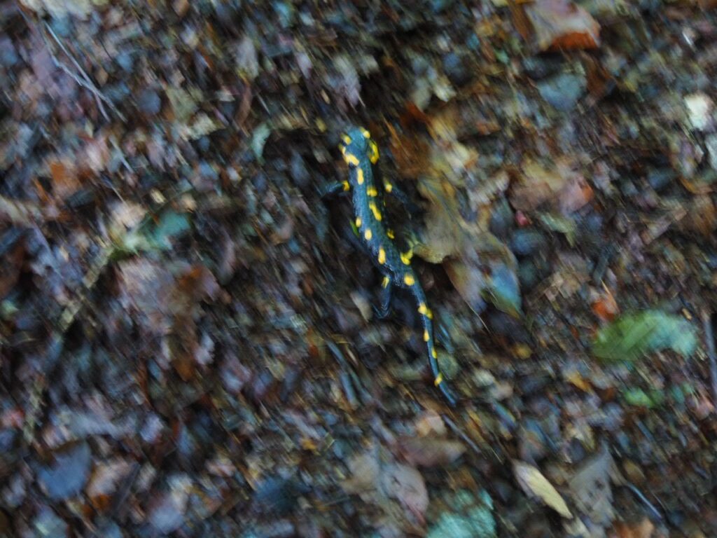 Blick zurück auf die wunderbar gelegene Capanna Cava Da guckt es hervor, das Rheinwaldhorn Von allen seiten schießt das Wasser den Berg hinab, wie weiße Strähnen im Fels Nur noch wenige Wolkenfetzen hängen in der klaren Luft Das Bleniotal, das zum Lukmanierpass hinauf führt. Ein bisschen verwackelt, der stolze Feuersalamander Bleniotal und Leventina kommen zusammen – da iegt Biasca Je tiefen, desto gemütlicher wird der Weg Da sind sie, die Maronenbäume … mit ihren stacheligen Fruchtschalen. Der sehr markant gestaltete mpderne Friedhof von Biasca