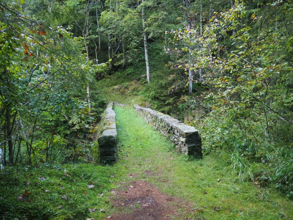 Hier drunter verbirgt sich eine massive Steinbrücke, deren Konstruktion sich aber immer hinter irgendwelchen Bäumen versteckt.