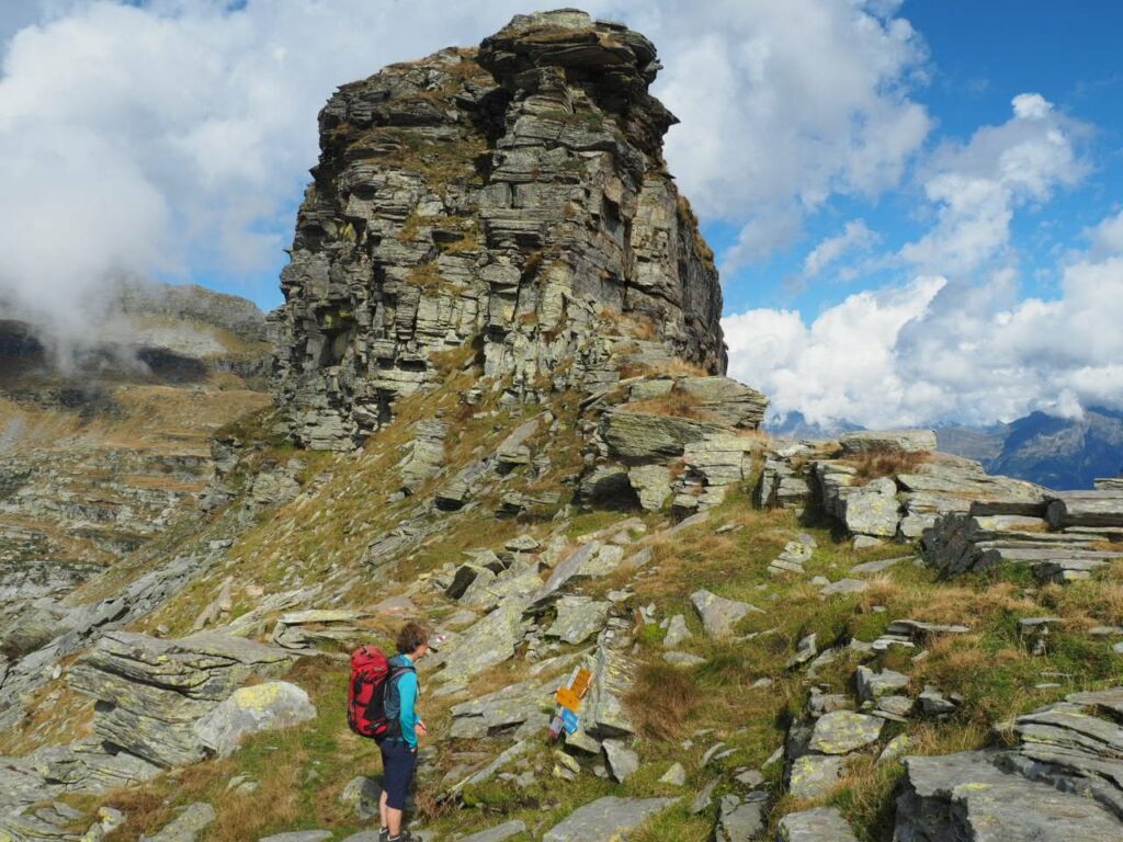 Um es kur zu machen: Sie hat’s super gepackt und es hat sich gelohnt. Der Aufstieg lag zum überwiegenden Teil im Schatten, das hat es erleichtert. Und wie erhofft öffnet sich auf dem Passo di Gagnone der Blick auf die ziemlich schroffen Tessiner Berge und das Versasca-Tal.