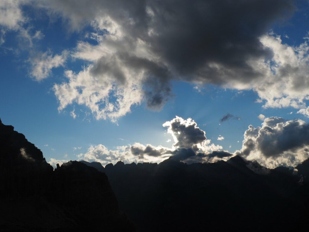 Imposante angestrahlte Wolkengebilde ersetzen den Sonnenuntergang hinter der Bergkette