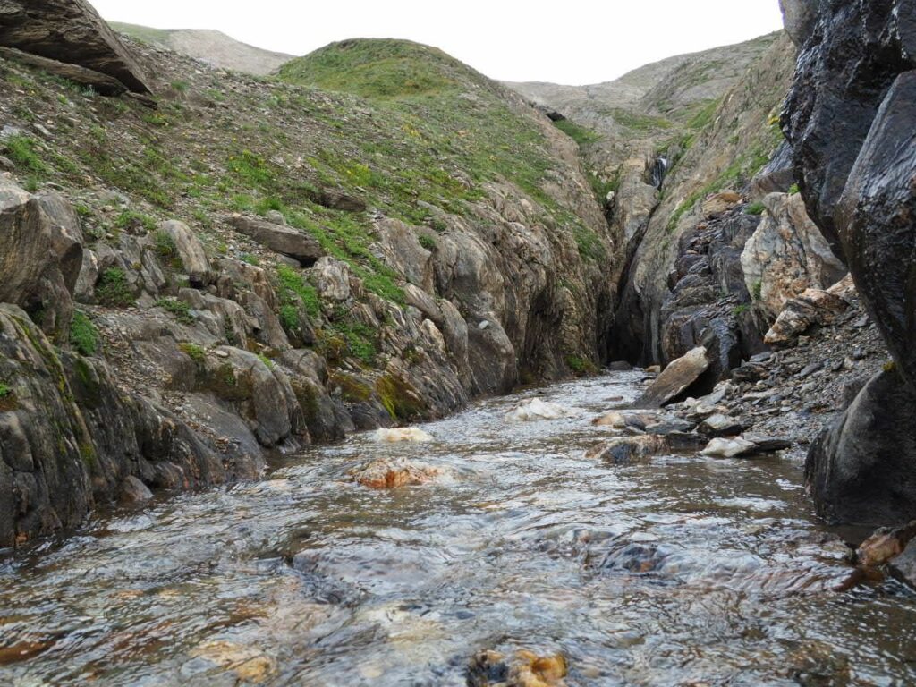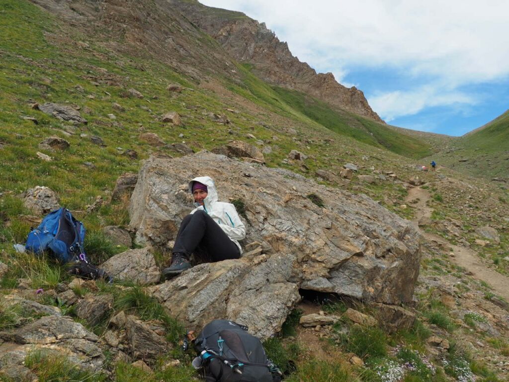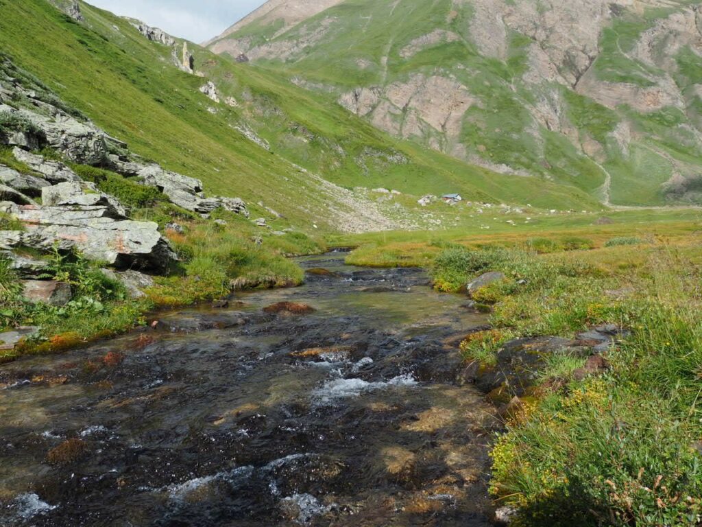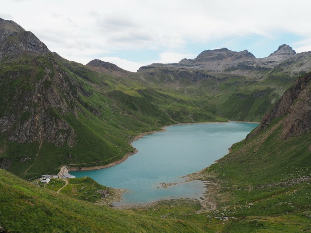 Heute gibt’s Wetter. Ein dauernder Sonne-Wolke-Mix, immer wieder treibt es Wolkenschwaden an uns vorbei.Und vor allem hat es Wind. Auf dem letzten Pass kommen wir kaum gegen die Düse an. Deshalb gibt es von da auch keine Bilder. Seltsamerweise stehen die gigantischen Windräder trotzdem still.Immer wieder sehen wir auf die inzwischen ziemlich geschrumpften Gletscher der umliegenden 3.000er. Seit vielen Jahren haben Cora und ich vor, diese Etappen bis ins Bintal oder zum Simplon mal als Skidurchquerung zu machen. Sie nennt sich Route de Soleil. Aber nie hat es geklappt. Ich muss sagen, im Sommer lohnt sich das auf jeden Fall auch.Gleich am Anfang bekommen wir einen leichten Regenguss ab, der aber der einzige des Tages bleibt. Weil wir der Sache nicht trauen, laufen wir halt doch noch ein Stückchen in Regenmontur.Wasser aus kleinen Schluchten …… und fröhlich durch die Almwiesen plätscherndUnd soooo viele Stauseen. An diesem hier kann ich es mit viel Geschick vermeiden, über eine Hängebrücke zu gehen.Auch unser Übernachtungsort, das Rifugio Margaroli, liegt an einem Stausee.Versuch, bei einer Pause ein wenig Windschutz zu bekommen..Entweder hat uns das Murmeli wegen Gegenwind nicht bemerkt oder es ist ihm egal.Links unten im Bild steht unsere Hütte.