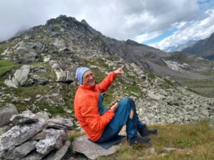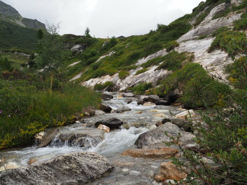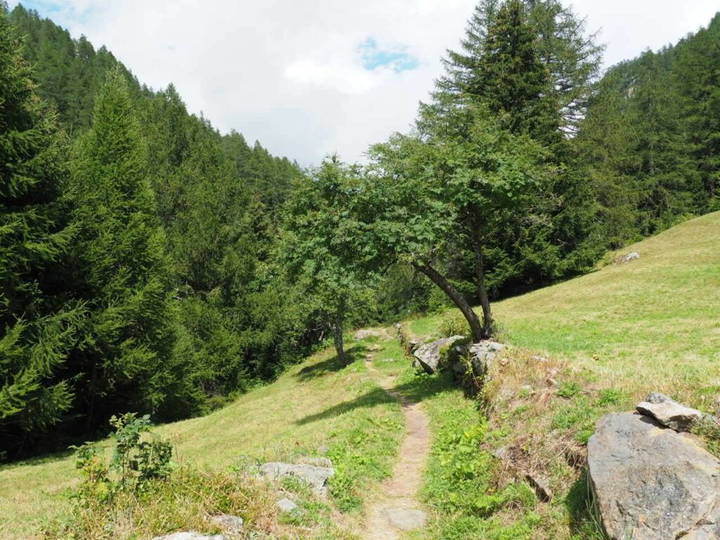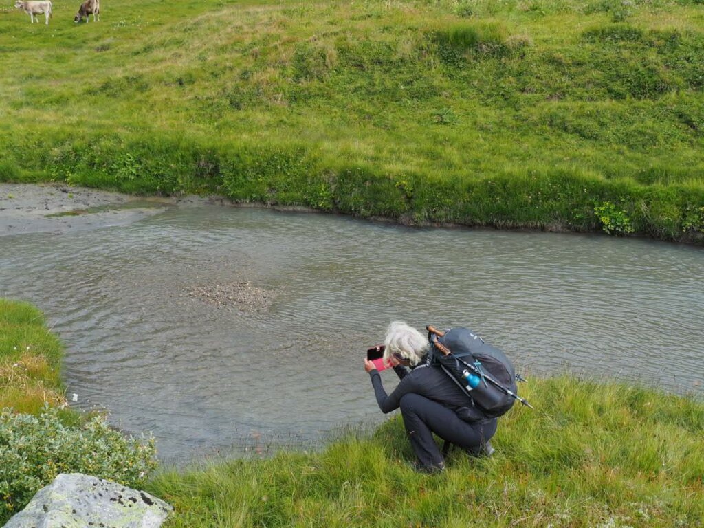 Unser Weg führt uns heute über zwei Pässe mit moderaten 700 Hm aufwärts ins freundliche Binntal, da geht’s dann auf schönen Wegen 10 km lang abwärts, so dass sich die Abwärtsstrecken dann auf 1400 Hm addierten. Als wir an unserem Campingplatz oberhalb Binn ankommen (Wunderbar: Die haben auch Zimmer) brennen die Fußsohlen und wir sind glücklich, die erste heiße Dusche unserer Tour zu bekommen.