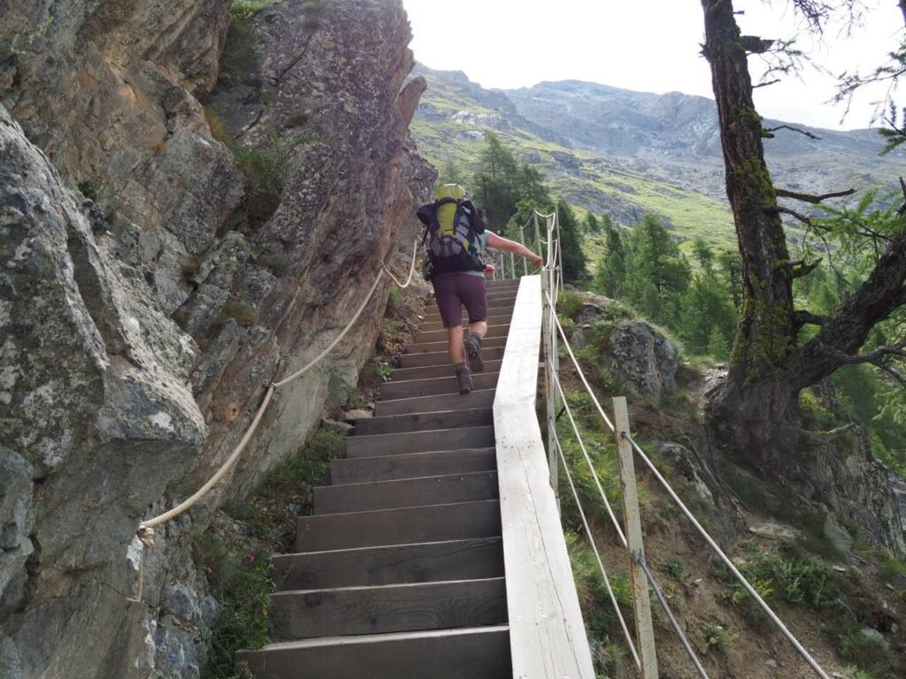 Wie nett von Gunda, dass sie mit mir die 2 Stunden durchs Tal bis Täsch läuft, bevor wir uns nach oben schwingen in Richtung Panoramaweg zum Sunnega.