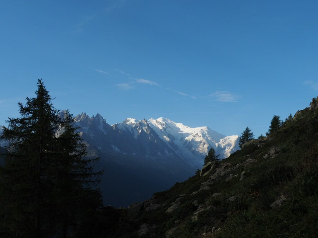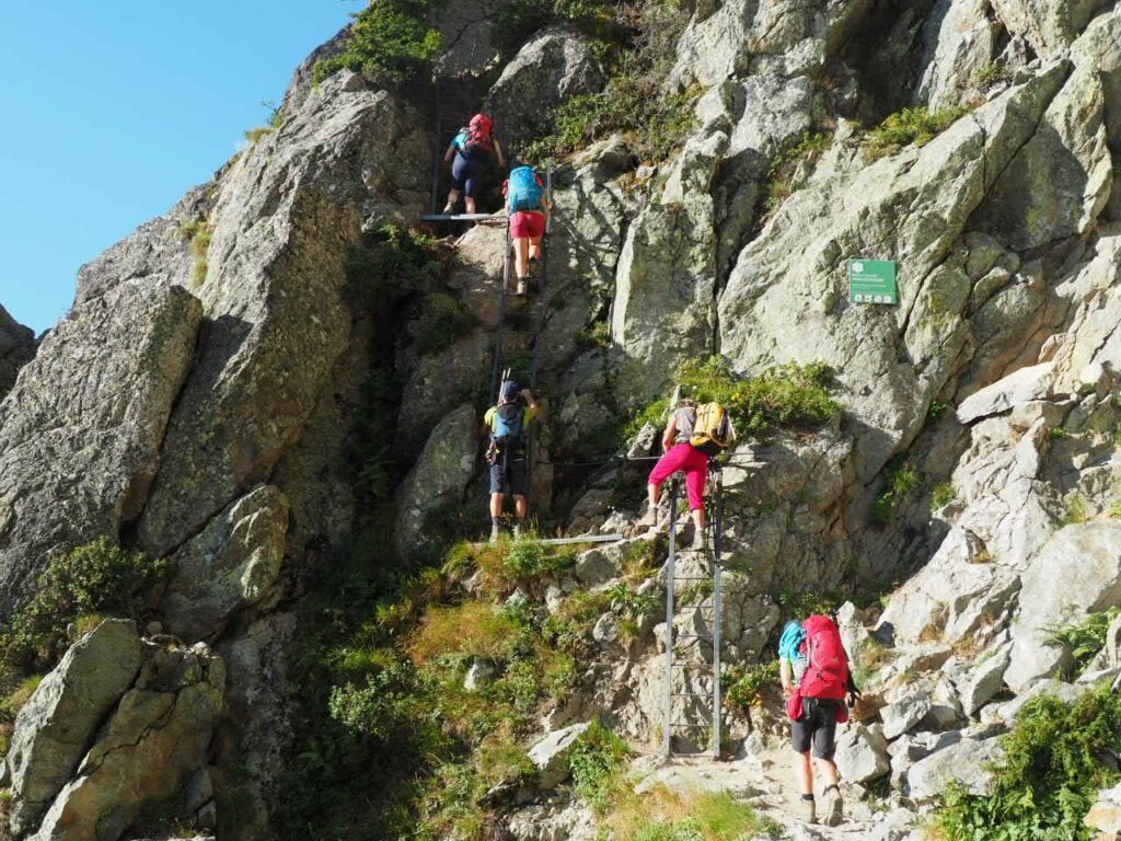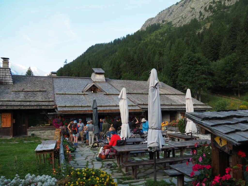 Die letzte Etappe der DAV MaMo Tour steht an. Von der Auberge de Boerne geht’s hinauf auf die gegenüberliegende Seite des MB, quasi als Panorama-Tour. Ihr könnt euch vorstellen: Wir sind nicht allein. Auch einige aus unserer TMB Community trafen wir auf der Hütte und jetzt auf dem Weg wieder. Trotz gar nicht so erschreckender Tourenzahlen schlaucht uns die Etappe ziemlich; vor allem die große Hitze und das viele Abwärtsgehen am Ende setzt uns zu.