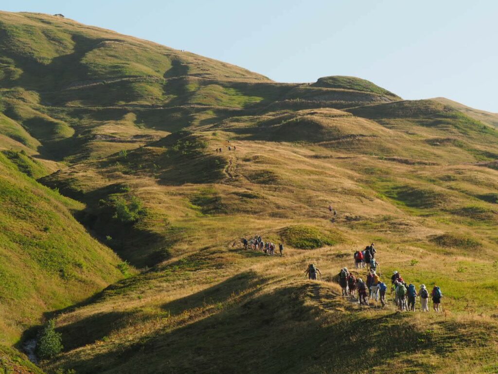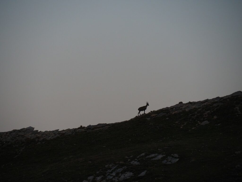 Der Lohn des frühen Aufstehens: Wunderbares MorgenlichtDer Höhepunkt des Tages kommt gleich am Anfang: Dieser tolle Grat, auf dem der Weg etwa 2 km entlang und drüber führt (ganz ohne MiMiMi-Potenzial)Während diese Gemse (und noch ein paar mehr) – oder doch Steinziege? – auf dem Hüttengrat auftaucht, strunzt doch wirklich einer rum: „Ey guys, I wonder, you have no animals here in the alps! We in Canada have so many bears and wolfs and foxes and mein Haus, and mein Auto and meine Yacht ….“ Ok, der letzte Teil ist von mir. Und ich Dubbel hab uns auch noch verteidigt und von Murmeltieren und Steinböcken erzählt.Es ist wahr: Eine Ami-Gruppe mit Muli-Transport. Diese roten Säcke enthalten das Übernachtungsgepäck der TN.Ziemlich viele Zelte standen um die Hütte herum. Hat mich sehr an GR20 erinnert. Übrigens: Das sogenannte Gedränge auf dem GR20 ist ein Nasenwasser gegen den TMB.Rückblich auf den Startgrat und meine „Verfolger“Da unten liegt Plan de la Lai, da geht eine Straße durch, trotzdem wäre die Übernachtung dort im Nachhinein die bessere Wahl gewesen.Von diesem Plan de la Lai kamen mir plötzlich nochmal Menschenmassen entgegen. aber es war nur ein Bus, der mehrere Wandergruppen losgelassen hatte.Beim nachträglichen Durcharbeiten gelernt: Das ist ein Adler, erkennbar am fächerförmigen Schwanz.Aus der beliebten Reihe: Letzter Blick auf den MB (gähn)Die schlagen sich durchs Gebüsch auf der Suche nach den besten Kräutern.Die auch.Ich erfreue mich and der neuen, veränderten Landschaftsform.Hmm, was war das nochmal fürn Berg? War während meines langen, intensiven Mittagstiefs..Das Refuge de Presset. Wäre verlockend und aussichtsreich als Etappenstandort – aber die haben da bestimmt Wassermangel, so, wie sie liegt. Außerdem habe ich meinen Col du Bresson jetzt geschafft und muss nur noch eine Stunde absteigen zum …… Refuge de la Balme Tarantaise, wo ein süffiges Panache sauer auf mich wartet.Wasser gibt’s hier genug, sogar um ein Mühlrädle anzutreiben.