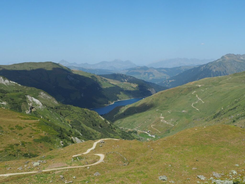 Weg vom TMB, weiter auf dem GR5. YESSS! Los geht’s gleich um 7 in wunderbarer Morgenkühle. Ich habe ein größeres Pensum vor mir – dass es mich aber derart schlauchen würde, hatte ich nicht erwartet. Auf dem 600 Hm Anstieg mitten in der Mittagshitze, eher steil und ohne Schatten, muss ich alle 45 Minuten längere Ruhepausen einlegen und auch das Wasser rationieren. Das passiert mir bei meinen 2 Liter, die ich immer dabei habe, sehr selten.
