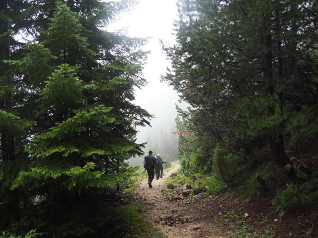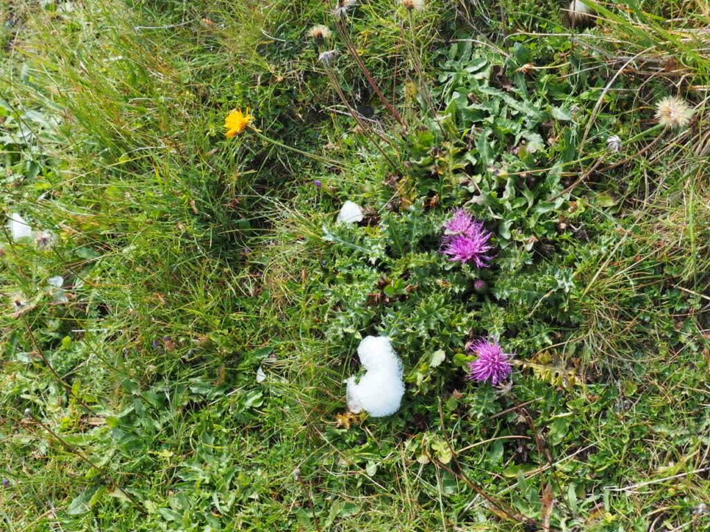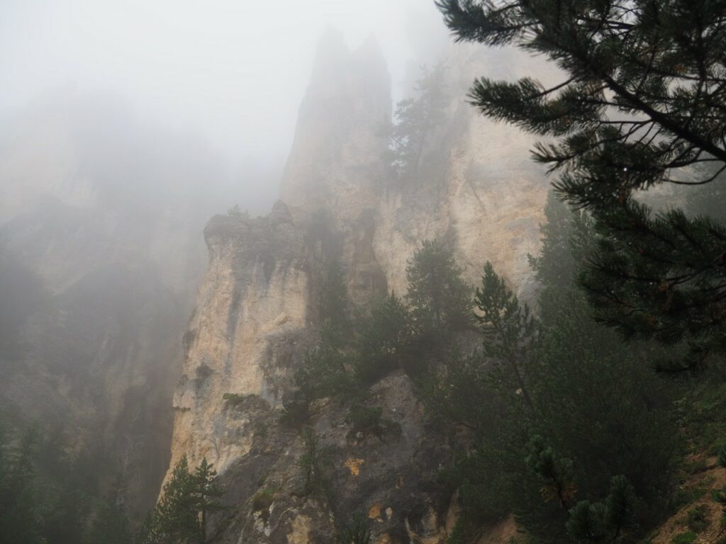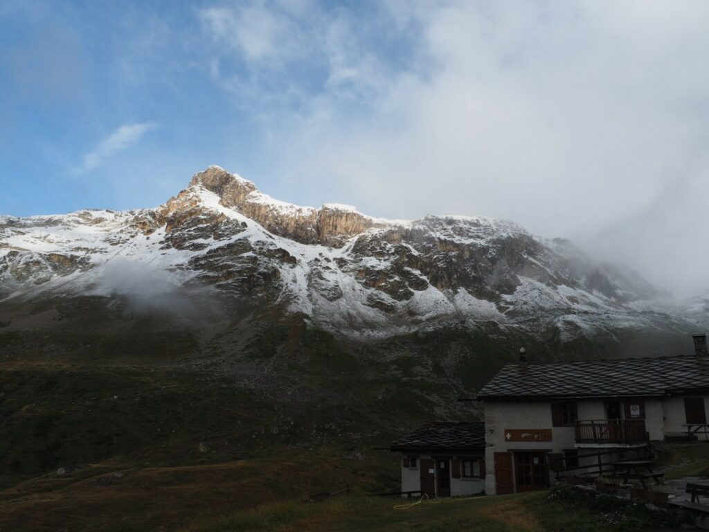 Wir bleiben als gut funktionierende und sich gut verstehende Gruppe zusammen und steigen gemeinsam ins Tal ab. Laut Wetterbericht mussten wir damit rechnen, dass es auch an diesem Vormittag noch regnet, aber wir haben Glück, es bleibt trocken und reißt immer wieder auf. Ein wunderbares Wolkenschauspiel, das in schnellem Wechsel die weißen Berggipfel freigibt und versteckt.