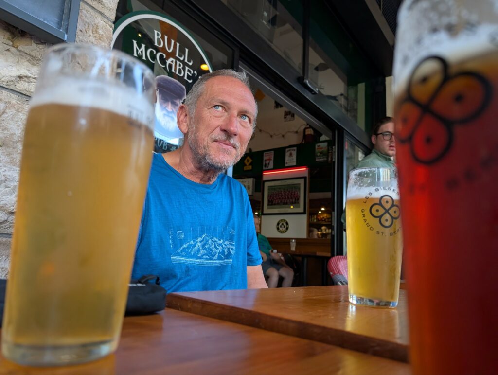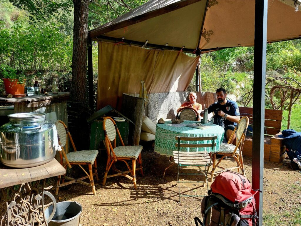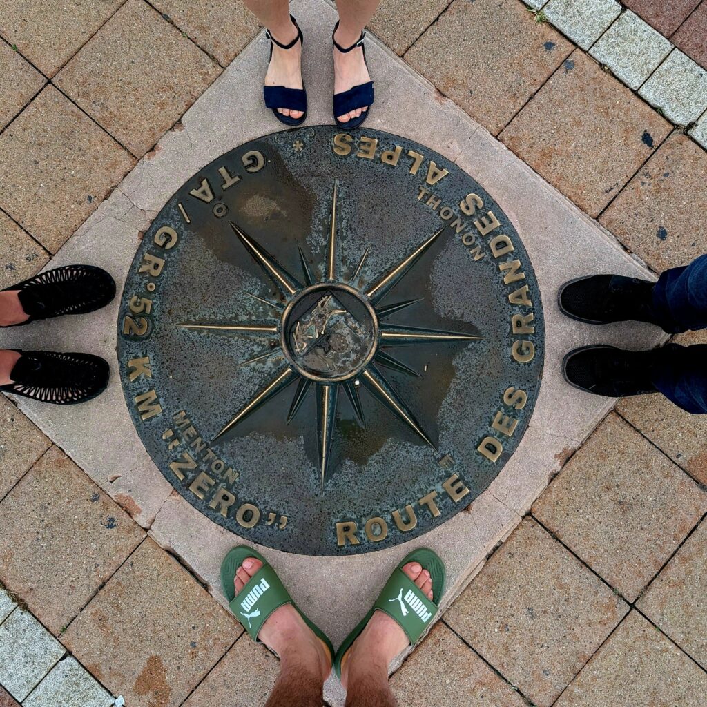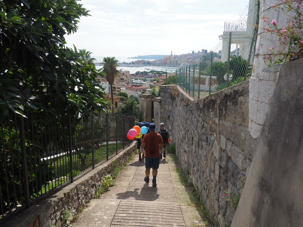 Unser Übernachtungsplatz (im 2. OG)Wir kommen nochmal an die französisch-italienische Grenze. Hier nebendran ist übrigens auch unser Frühstücksplatz.Erster Blick des Tages auf das Ziel. Schon noch ziemlich weit weg …Wie gestern erklimmen wir noch ein Extra-Gipfelchen: Gut für Gipfelbilder und Aussicht. Ja, Jochen schwächelt ein wenig bei der Erklimmung der extrem schwierigen letzten Klettermeter.Schließlich schafft er es doch fürs Vater-Sohn-Bild.… samt Selbstauslöser-Dreier-Selfie.Atemberaubendes Küstenpanorama.Monaco und seine Yachten mal gschwind her gezoomt.😍Sehr nett: Auf dem Abstieg hat jemand einen kleinen Pausenpalatz eingerichtet mit Sirup, Pavillon und Sofa(!)Noch bevor wir bei den ersten Häusern sind: Die Autobahn samt Stau.Hmm, Kindergeburtstag oder was? Aber die Ballons an Wanderstöcken befestigt? Und mein Name steht drauf? Und Alpenbogen steht drauf? Ich bin verwirrt und auch hilfesuchende Blicke zu Cora und Jochen helfen nicht.Und dann kommt der Markus aus dem Gebüsch!!!!! Ist der Kerl hierher gefahren, um uns zu empfangen, auf den letzten Metern zu begleiten und die nächsten Tage zu verbringen. Wahnsinn, verrückt – und so schön. Danke, danke, danke.Da war doch noch was? Die große Klappe von Jochen vor 4 Jahren, dass er mir am letzten Tag den Rucksack trägt, wenn ich wirklich so weit komme?Gesagt, getan. Ein Muli könnte es nicht besser.So kann ich locker flockig mit meinen Luftballons nach unten schlendern.Schnurstracks aufs Meer zu.Auf der Strandpromenade auf der Suche nach der besten Badestelle.Gefunden 😃Danach ein Bier …… und abends Schlemmen auf unserer großzügigen Terrasse.Am Tag darauf finden wir die offizielle Abschlussplakette des französischen GR5, die wir einfach mal als Symbol für den Alpenbogen-Abschluss umwidmen.