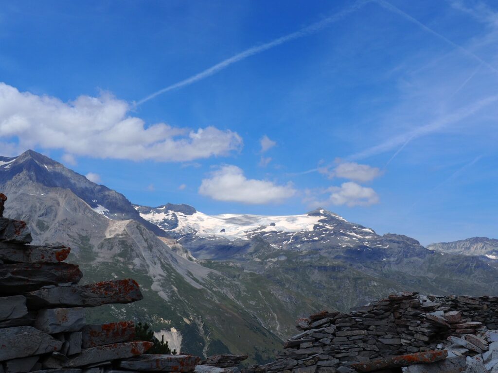 Je höher wir kamen, desto weiter wurde der Blick auf die hohen, vergletscherten Berge der Vanoise. Als ich letztes Jahr dort durchkam, war alles schneebedeckt, weshalb ich ja die höher gelegenen Panoramawege nicht nutzen konnte.
