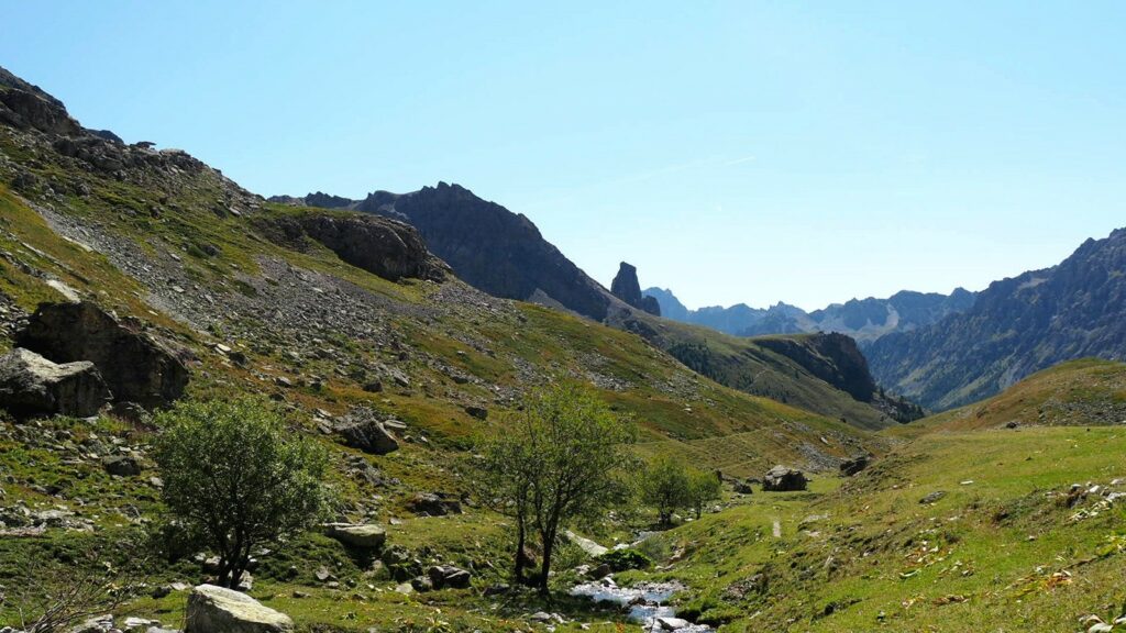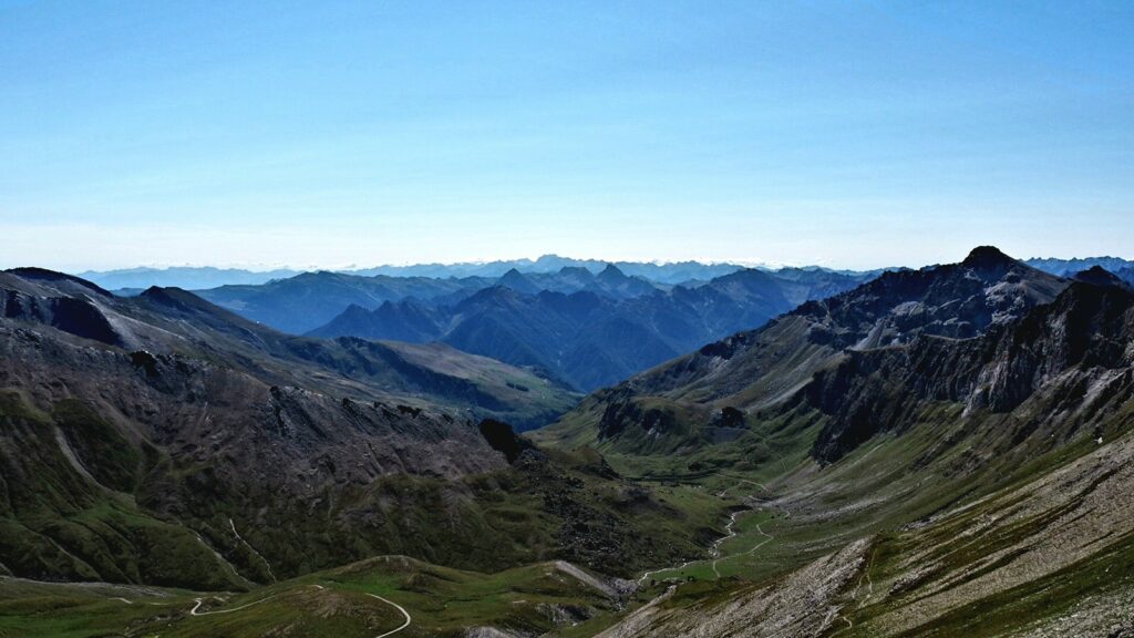 Los geht’s kurz nach halb 8 am Rifugio Melezè.Einerseits steht der Riesenfelsbollen etwas seltsam in der Gegend rum, andererseits lädt er zum Klettern von allen Seiten ein.Die mögen sich.Am Colle die Bellino – Übergang zum Valle Maira.Von hier aus ist in läppischen 140 Hm der Monte Bellino leicht erreichbar. Das ist so ein typischer Schieferschuttberg. So mache selbst ich einen kleinen Gipfelabstecher, zumal es ab hier eh nur noch bergab geht.Und schon bin ich oben. Das Gipfelkreuzchen ist niedlich.Und natürlich gibt es jede Menge Panorama – inklusive Monviso ohne Wölkchen.Nochmal in groß.Auch andere Richtungen sind für Eingeweihte interessant – braucht aber etwas Vorstellungsvermögen. Das Spitzchen ganz im Hintergrund ist der Cima Nord der Argentera. Wenn alles optimal läuft, wollen Cora und ich dort hochsteigen. Mal sehen…Der Colle von der Mairatalseite.Das Landschaftsmuster heißt hier: Unten weite Almwiesen, darüber schroffe Felsgebilde.Tja, worauf die hinweist, wissen wir alle.Warum dieses Bild? Doku: In diesem Gümpchen habe ich ein erfrischendes Sitzbad genommen.Und der hat die ganze Zeit aus 10 m Entfernung zugeschaut. Ich hab nix mitgekriegt, dass er sich mal an den Kopf gelangt hätte.Das Bächlein hat mich sehr lange begleitet.Mein Ziel, Campo Base, ist eine Kombi aus Campingplatz und Rifugio.Imposante Kulisse für das Rifugio.